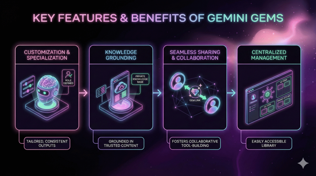 Gemini Gems are more than just a convenience feature; they are a powerful tool for creating reliable, customized, and collaborative AI workflows. By allowing you to pre-configure Gemini for specific tasks, they ensure consistency and quality in every output, transforming how professionals and power users can leverage AI.